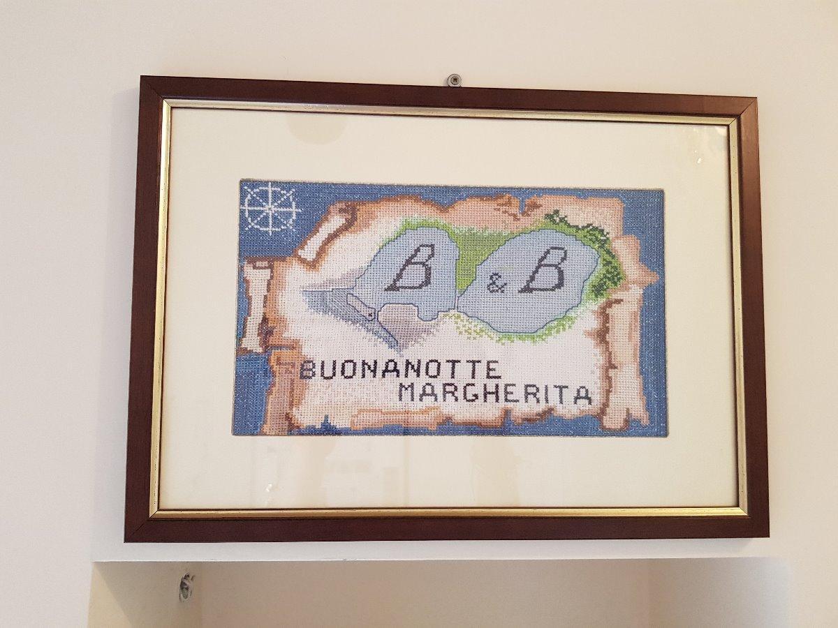 Il B&B Buonanotte Margherita è il primo B&B della città vecchia. Il palazzo, vicino al mare, completamente restaurato, si affaccia sull'ariosa Piazzetta San Francesco, sede dell'Università. Dai suoi balconi si gode della più viva piazza del centro storico di Taranto, con i suoi ristoranti e bar. "Buonanotte Margherita" è una dimora di prestigio dove riecheggiano i suoni, i profumi e le emozioni del passato, una struttura di design caratterizzata dall'attenzione ai particolari, una residenza elegante e unica nell'originalità del suo stile, un'antica costruzione dove gli echi del passato incontrano i comfort del presente. A disposizione dei clienti ci sono due luminose camere con balconi, doppie, matrimoniali o ad uso singola, ognuna con servizi privati, aria condizionata, riscaldamento, wifi gratuito e libertà di rientro notturno ad ogni ora.